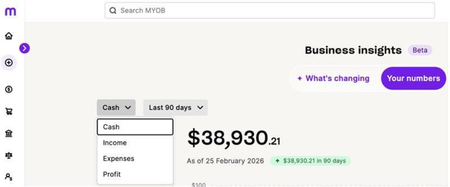 We’ve expanded AI Business Insights (Beta) so you can now see Cash and Profit alongside Income and Expenses in the Your numbers view. This gives you a clearer picture of how money is moving through your business and what you’re really keeping after costs. What’s new Cash view – Track how your cash position is changing over time so you can spot dips or improvements earlier. Profit view – See how your profit is trending, helping you understand if pricing, margins and operating costs are heading in the right direction. All inside Your numbers, with the same interactive charts you already use to compare periods and explore trends. How to try it Open AI Business Insights (Beta) from the purple banner on your MYOB Business dashboard. Select Your numbers Use the filters to choose Cash or Profit and a time period (eg Last Month) Scroll down to review the charts and summaries, and jump into your usual reports (like Profit and Loss) when you want to cross-check the detail. Share your feedback These Cash and Profit views are part of the ongoing AI Business Insights (Beta), so your feedback is important. Use the thumbs up / down controls in-product where available. Or reply in this community thread with what’s working well and what could be clearer. Thanks!13Views0likes2CommentsMYOB Business Lite BAS reporting