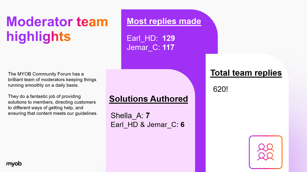 A massive thank you to these contributors, users and supporters of the MYOB Community Forum