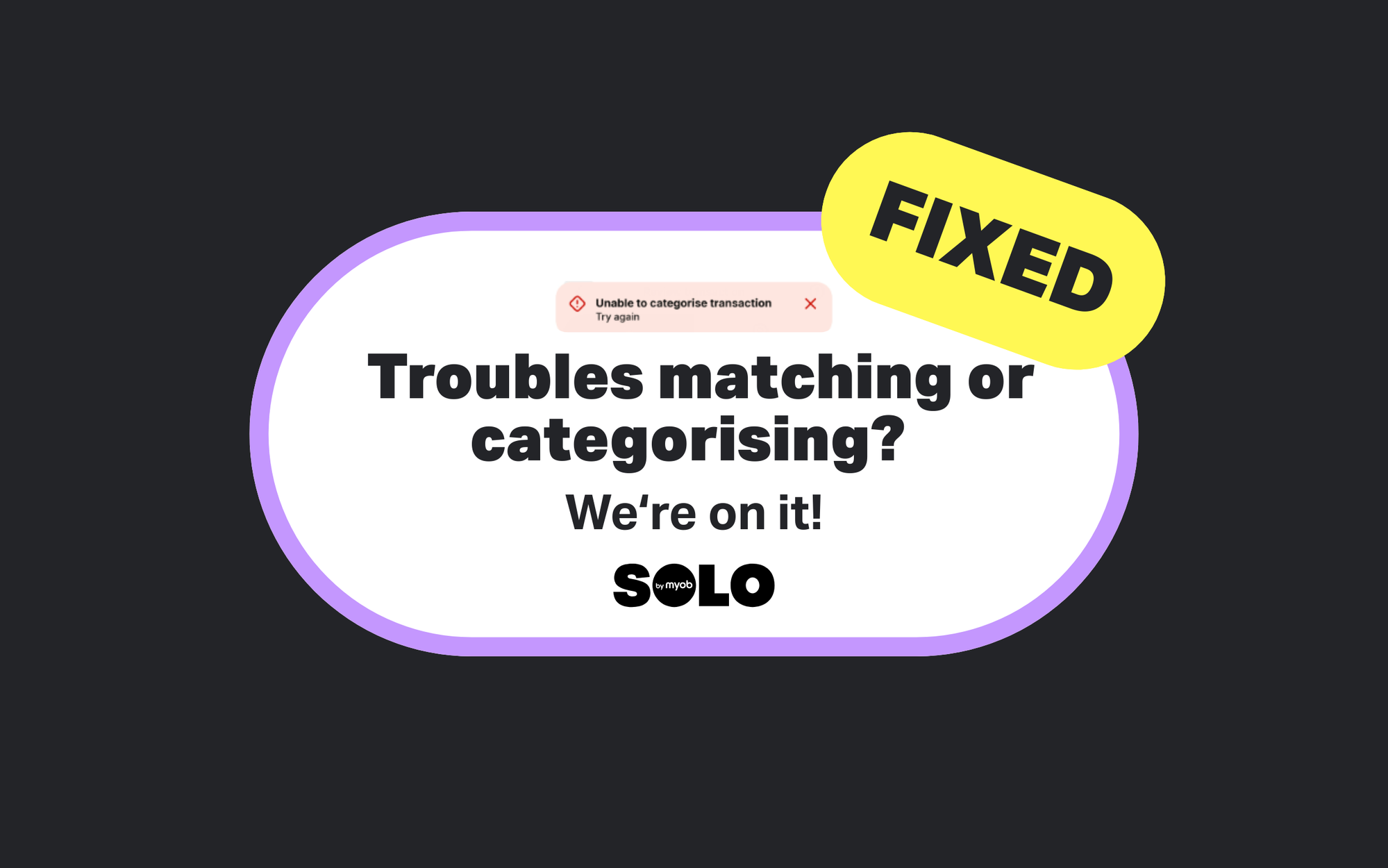 Over the weekend we've gotten reports of Solmates receiving this error when matching or categorising their transactions: