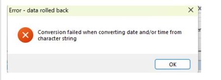Exo Business - Conversion failed when converting date and/or time from character string. - September dates - New Zealand - Windows 11 & Windows Server 2025