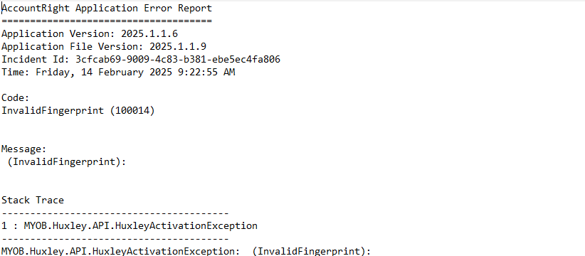 Issues opening an Offline MYOB after upgrade to version 2025.1.0