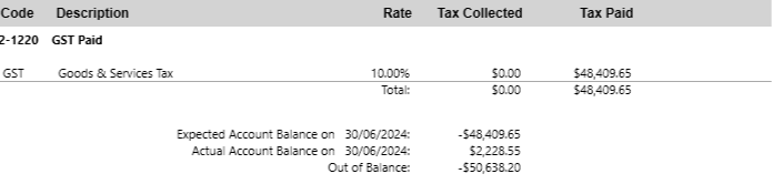 Our GST PAID reconciliation summary is out of balance and it is out of balance by the amount of the amount of GST Claimed . It appears it does not recognise the amounts claimed during the year. Can anyone help on how this can be fixed and rectified going forward or what we are doing wrong ?