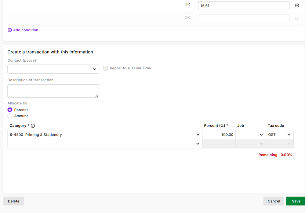 I am trying to add an amount to one of my Automated Bank Rules, but it won't let me save it? I have tried typing all the amounts again, but still giving me this error?