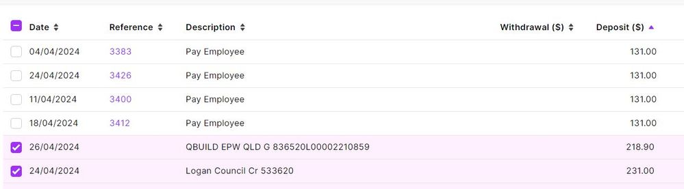 Employee tax deducted shows as bank deposit in bank reconciliation.