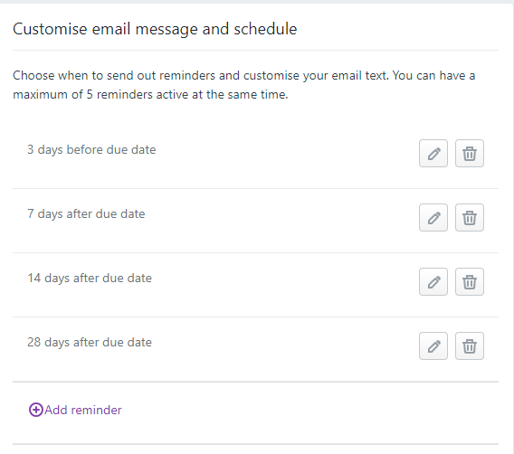 Please see this help article for more information. Setting up invoice reminders