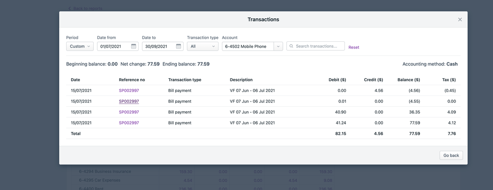 It would be that the transaction SP0029997 has multiple different transaction lines posting to the selected account 6-4502. It's best to click into this Pay Bill transaction, then review the transaction lines for more details.