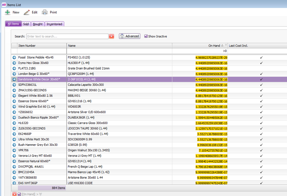 I have in both files many inventory values that are incorrect, showing long negative value decimal place numbers.