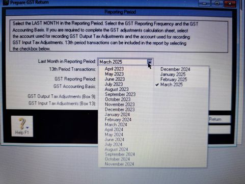 I am preparing the GST return using MYOB account right Premier. However, the correct period end (Apr 25 to May 25) does not appear in the dropdown list. When we started a new financial year last year, I selected the option to keep all records, but I believe we may have now reached the three-year max data limit.