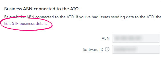 Other details, like your ABN and Software ID, were recorded when you set up Single Touch Payroll. To update these details you'll need to go through the STP setup steps again.