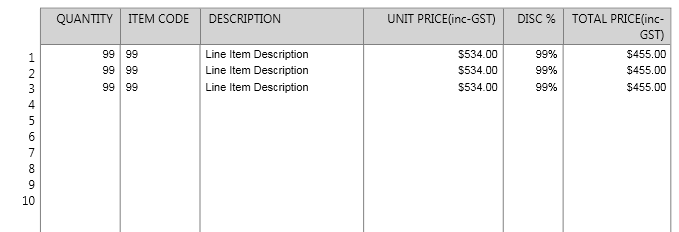 AccountRight doesn't allow for the user to have the line item number shown on an invoice/customise form.
