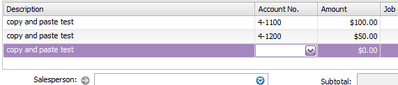 Eventhough I am only selecting the information within the Description section when copying, it selects the whole line entry in purple and then when pasting it into to next line entry I get the below info copied: