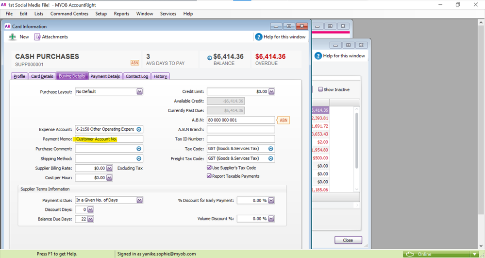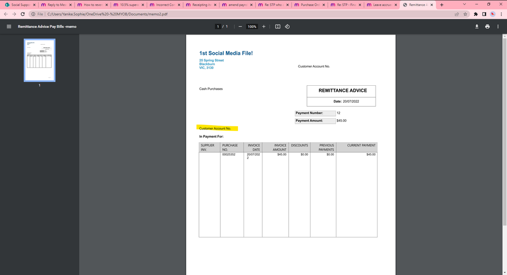 Are there any suggestions on where to put a customer account number in the supplier card so a field can be added to the remittance advice template? The template doesn't allow custom fields at all (I think it should) but it would be useful to have a field for the customer number option. I have one supplier that keeps missing our payments or mis-matching them and I think the customer number on the remittance advice might help.