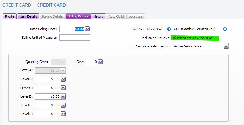I am trying to set up a inventory item as a credit card surchage to use. When I tick the Tax Inclusive box it still seems to add GST onto the line.