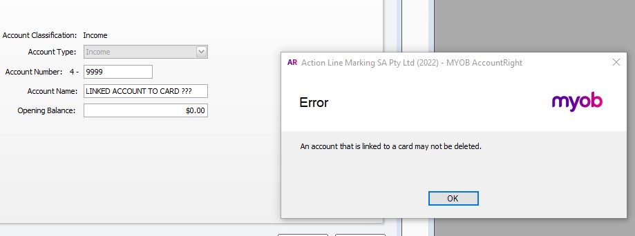 However, MYOB of new - vs the old Permier does not make delting accounts easy - it seems that once you have linked something, inadvertently or otherwise it becomes almost impossible to delete and that annoying reminder tells you so.