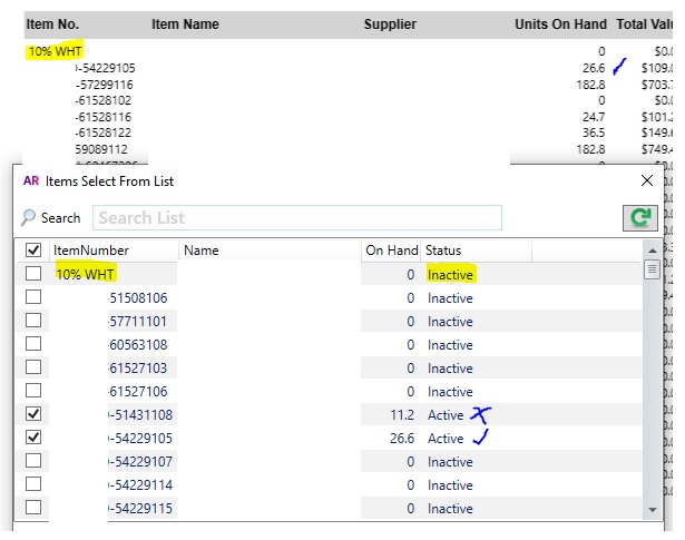 I have a problem with the Item List Summary Report trying to deselect inactive items.