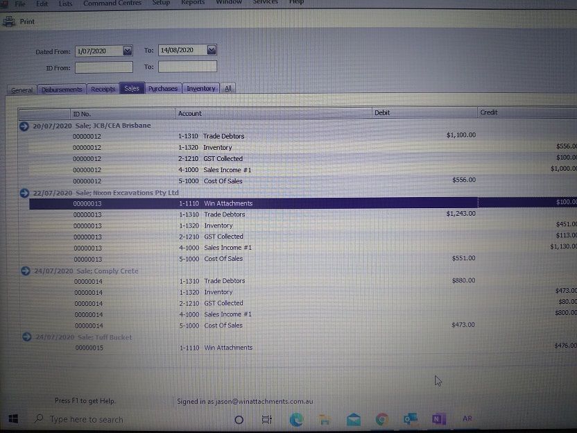 Hi Melissa, Yes the item is linked to the sale but not the asset account 1-1110 should be only 1-1320 Inventry