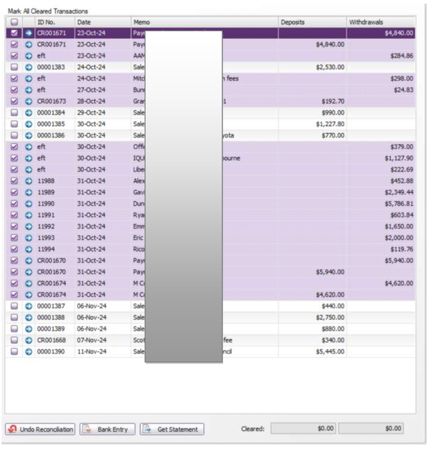 They do not belong in this screen since I went into 'Sales', 'Enter Sale' and once the customer invoice/sale was created it instantly showed in the reconcile screen/window...