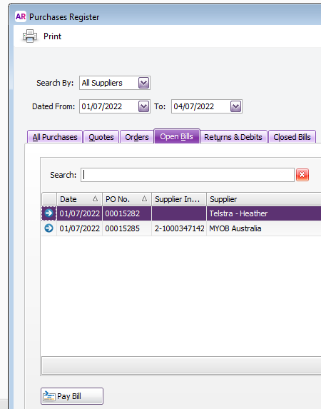 Just wonder can MYOB AccountRight has function that invoices numbers can be carried on to "Pay Bill" dialogue.