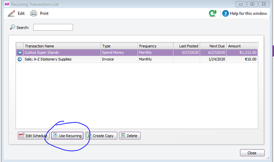 I am not able to create recurring transactions. I have tried using the normal method of selecting a transaction and then going through the "Save as recurring" tab. I have also deleted all previous recurring transactions for the particular transaction, and tried creating a fresh recurring transaction. All to no avail! I have the latest update for Accountright - Build 2019.4.23.1762. A staff member (no longer with us) who had set up the previous recurring transactions had set them to finish at the end of last calendar year. Now that they have finished, I am trying to create them for this new year. Any suggestions??