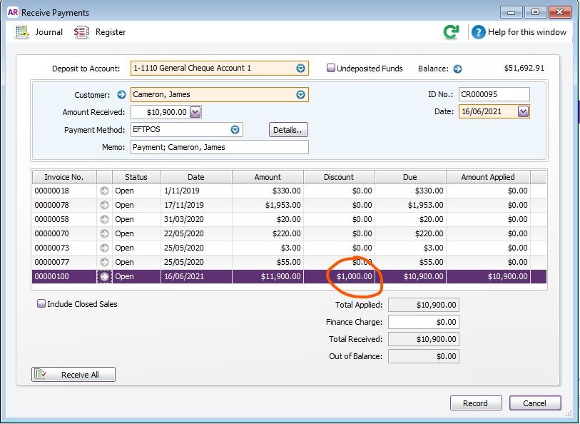 - Add the discount in Receive Payments.