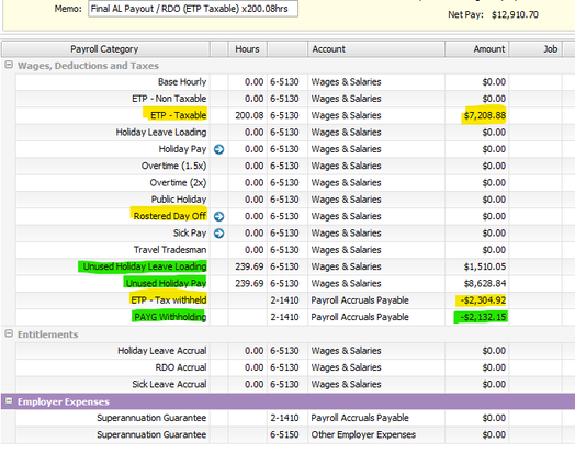 Can someone please help - when processing a termination, do you need to process the unused AL & leave loading separately, and run another pay for the RDO's as it's considered an ETP - Taxable Component?
