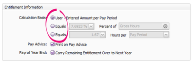 If so, you would want to make sure you have your Annual Leave accrual item set to calculate and accrue either a fixed amount per pay period or a % of the gross hours per pay period. See below: