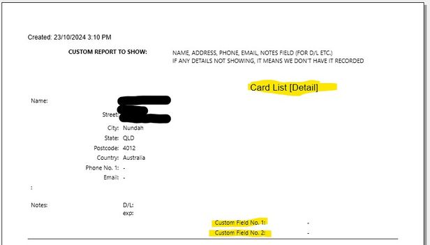 Also, does anyone know how to delete the default report name i.e. Card List [Detail].... I've tried, but couldn't so I just moved it about the page.