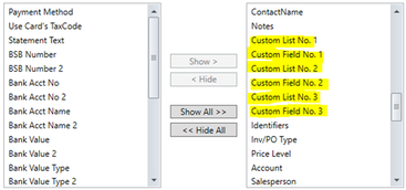 However, when I create my custom report (Reports > Index to Reports > Card > Card List [Detail] > Card Type [Employee] and then want to show \ hide the required fields, it still shows as "Custom Field 1" etc:
