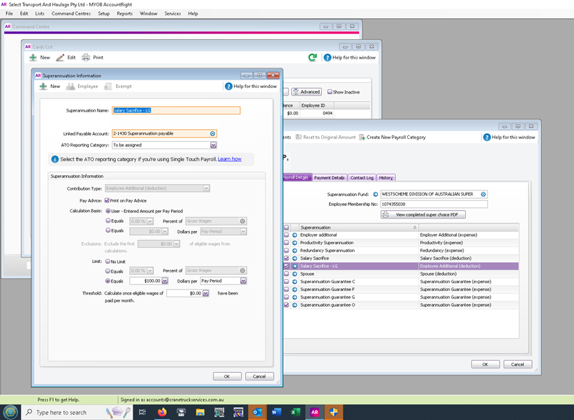 I'm trying to link a Salary Sacrifice account under Superannuation to the correct ATO reporting category however the only options I'm getting are either "to be assigned" or "Not Reportable".