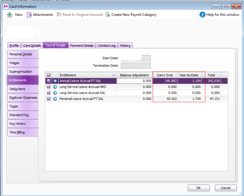 Difficulty understanding leave accrual, and how to adjust leave entitlement balances in Carry over and Year-to-date columns