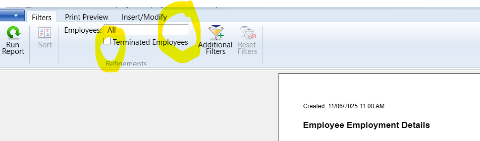 I just want to print for a couple of employees from this report.  However I can no longer select the individual employees and all the terminated employees are in the report as well (even though this is not ticked)
