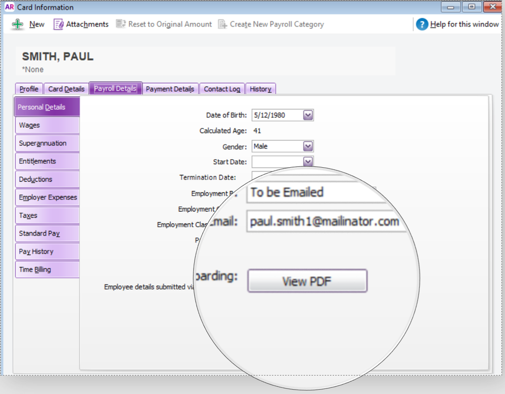 Data exported to MYOB AccountRight correctly, but there is no View Form button embedded in her card