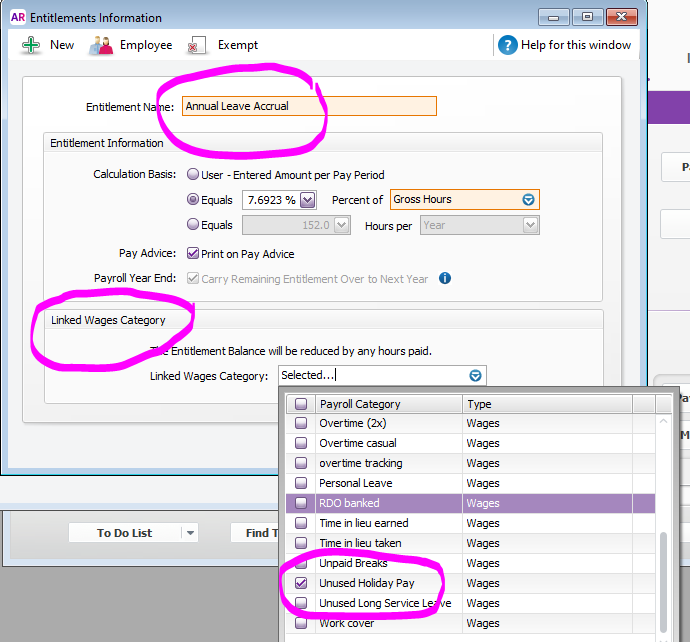 When it comes to paying out unused leave you don't need to transfer the accrual balance from the leave entitlement to the unused leave category. Instead you would link the Unused leave category to the wage leave category which will reduce the entitlement balance when you pay the unused leave. To do this go to Payroll Categories>>Entitlements tab>>open the leave accrual>>select the Unused leave category in Linked Wages Category: