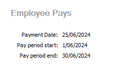 We pay the majority of our employees on a monthly basis. I setup the pay run for June for the period 1/6/24 to 30/6/24 with a payment date of 25/6/24.