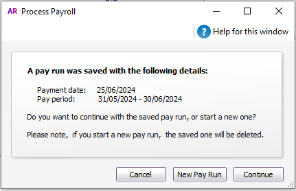I as halfway through the pay run and saved and closed the pay run so that I didn't lose my entries if the system crashed.