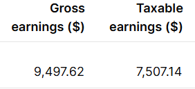 One of our employees shows a gross earnings of $9497.62 and a taxable earnings of $7507.14