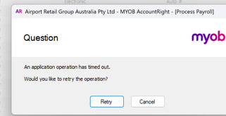 I press the process pay button at the end of completing pay and it just crashes. It doesnt take me to the next step or generate any payslips or STP information. Here is the error message: