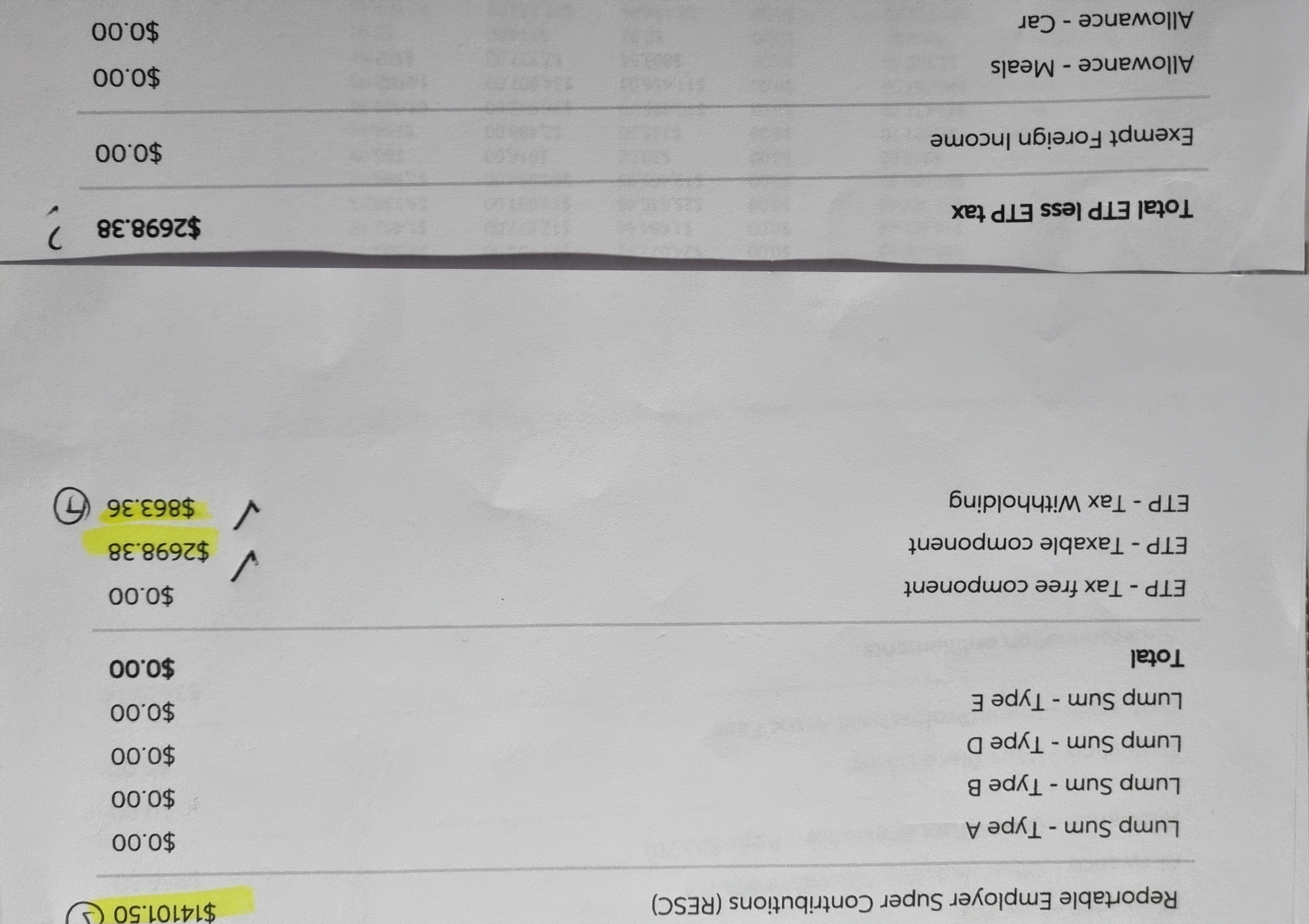 The ETP taxable Component agrees to our payroll summary - amount $2,698.38