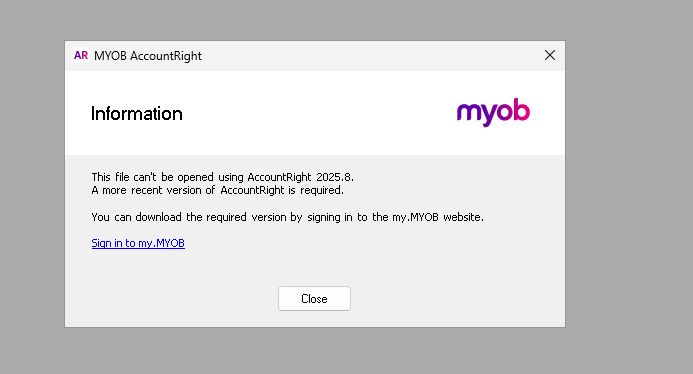I cannot open sample file use latest myob