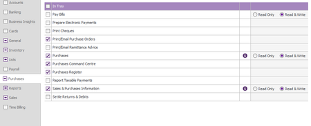 Hi, I have set up our Purchasing officer with a limit on what he can do. I need him to order items and receive items but not able to pay bills. He is able to create an order but is unable to recei...