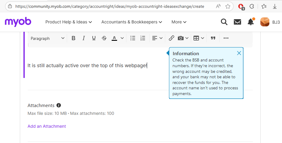 It is still actually active over the top of this webpage!