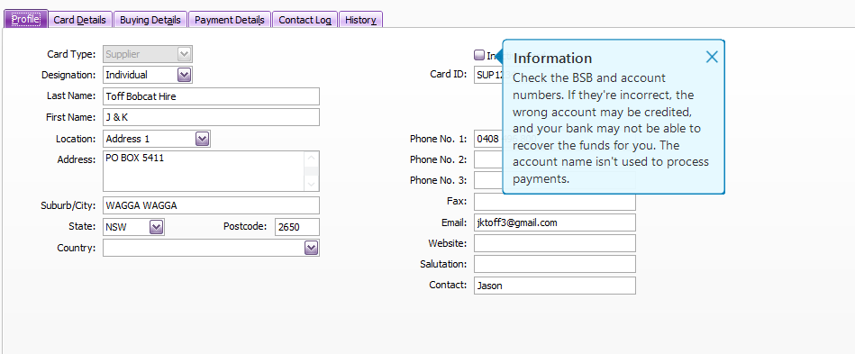 This one below is a warning from the "Payment Details" tab