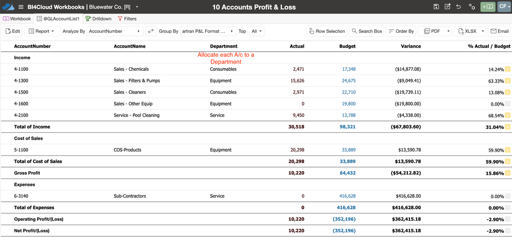 For example our Business Intelligence solution BI4Cloud allows you to setup Department "Tags" then you simply allocate each GL account to the relevant Department. Then using the prebuilt P&L & Balance sheet reports and dashboards you can generate your own very flexible Departmental reports.