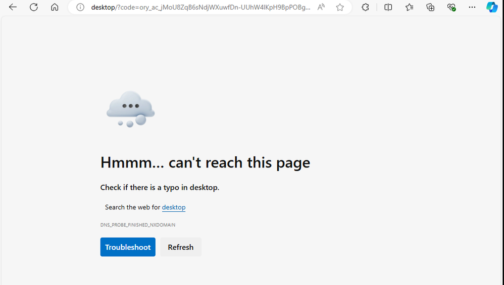 You seem to be on the right track, but I don't see where you parse "code=..." from the "https://desktop?code=..." URL. It looks like you are treating it like a "normal" URL and opening it in the browser.