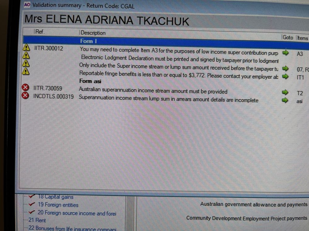 "Australian superannuation income stream payment summaries" schedule, and that all data has been entered into the correct fields within this schedule.