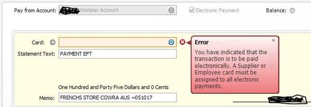 Error: "You have indicated that the transaction is to be paid electronically"