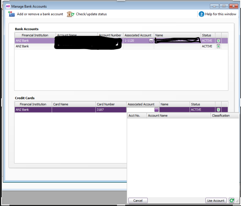 Thanks for the screenshot! No worries, a quick check of your category set up is what you need to do. The usual reasons you’re not seeing any options are that the linked General Ledger account in your file isn’t set as a “Credit Card” type, or the account might be inactive or a header. Give your categories a quick review and make sure the credit card one has the right type and classification.