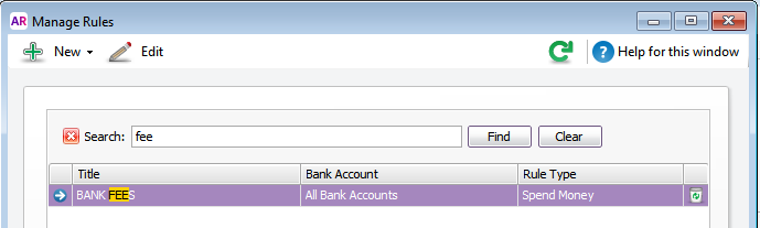 Search in Bank Feed Rules