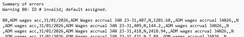 When that happens, AccountRight reverts to its own defaults for those IDs and continues importing the rest of the data.