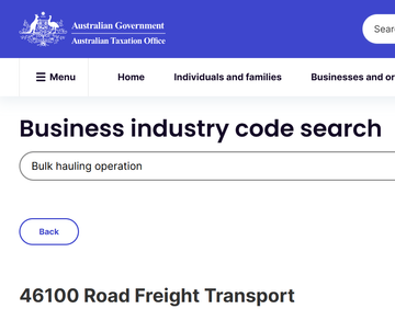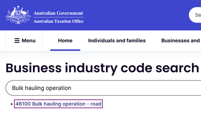 We took your "bulk hauling operation" wording to the ATO business industry code search tool, as you can see here.